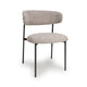 An ultra minimalist dining chair, upholstered in natural linen effect fabric. The angled deco style black metal frame supports a comfortable rounded seat pad and curved back rest. Assembly required. Sold in sets of 2.