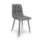 A gently sloped contemporary dining chair, upholstered in sleek grey brushed velvet fabric. The comfortably contoured seat and back feature stylish vertical striped panel stitching. Fitted with cross frame tapered black metal legs. Assembly required. Sold in boxes of 4.