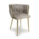 An exquisitely woven accent chair with a stunning gold frame. The smooth black brushed velvet upholstery is threaded around the semi circular gold backrest frame, to create the ultimate in elegance. Comfortable high supported armrests and a padded seat complete the extravagant look. The chair is supported by matching metal legs with adjustable feet. Assembly required. Sold in boxes of 2.