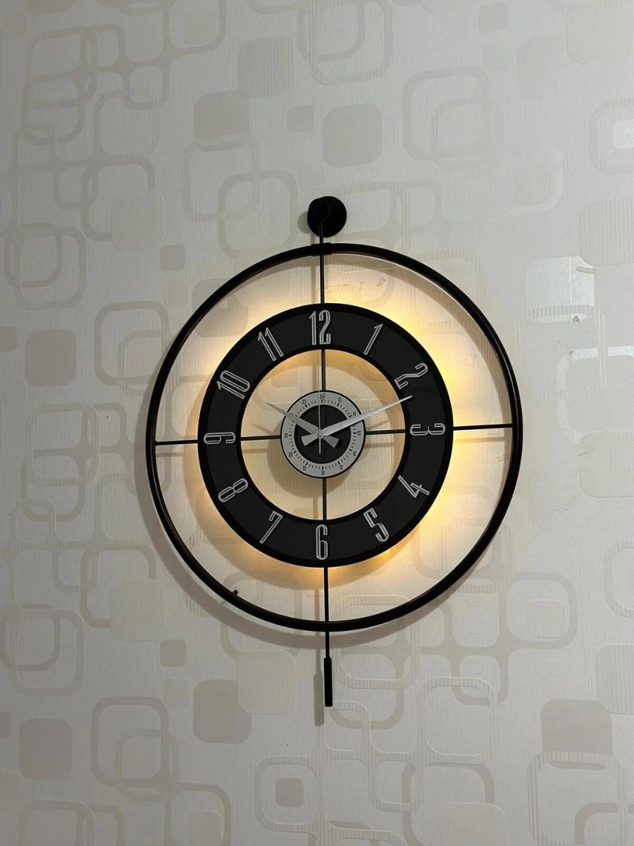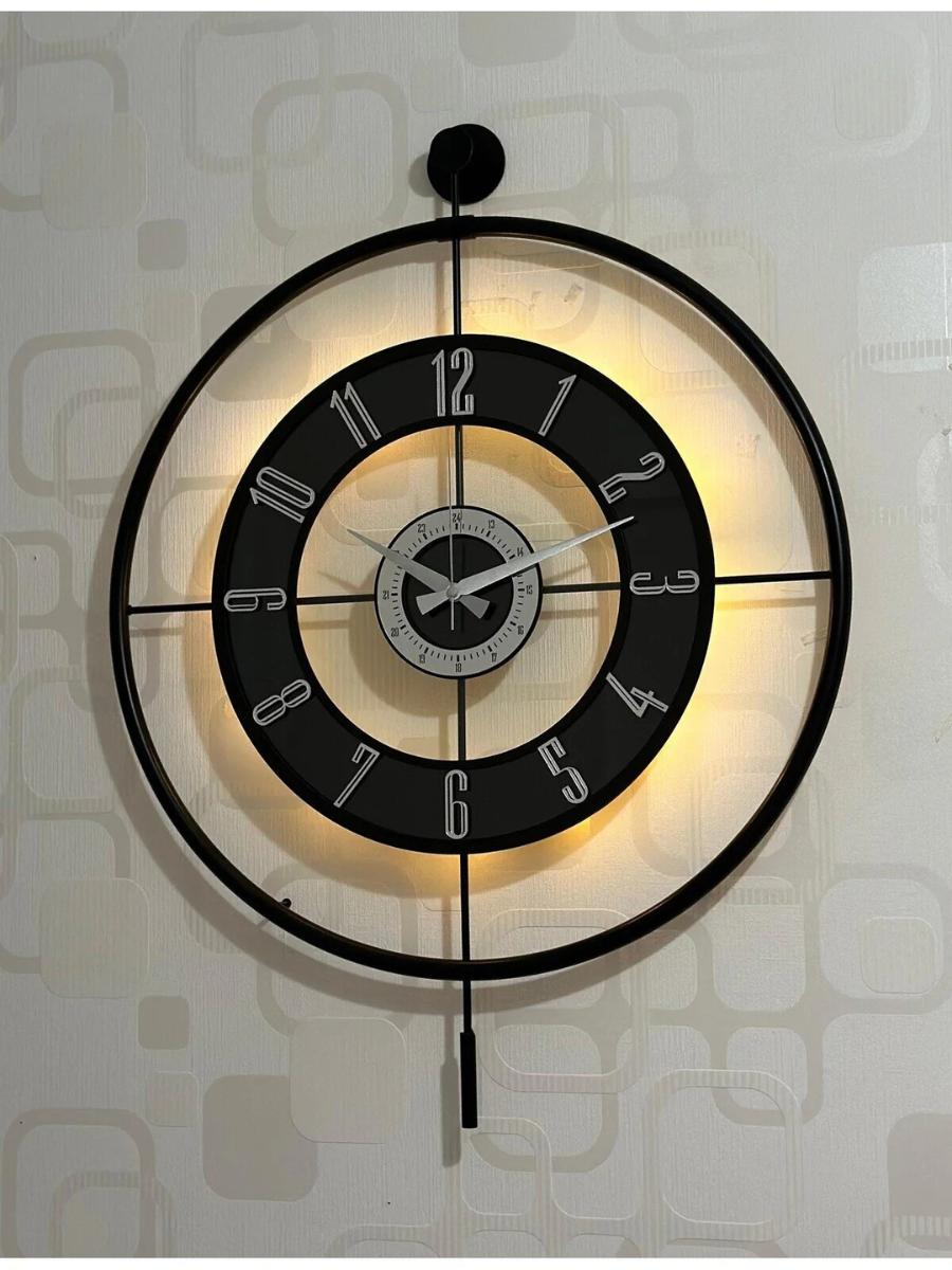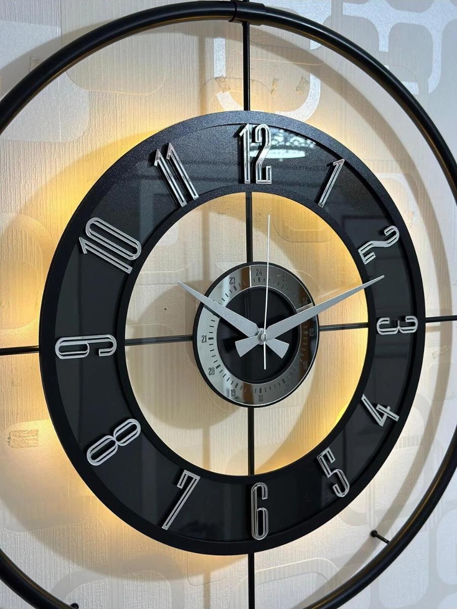 Large Decorative Wall Clock – 60x80cm | Modern Metal Frame with LED Lights & Real Glass Centre