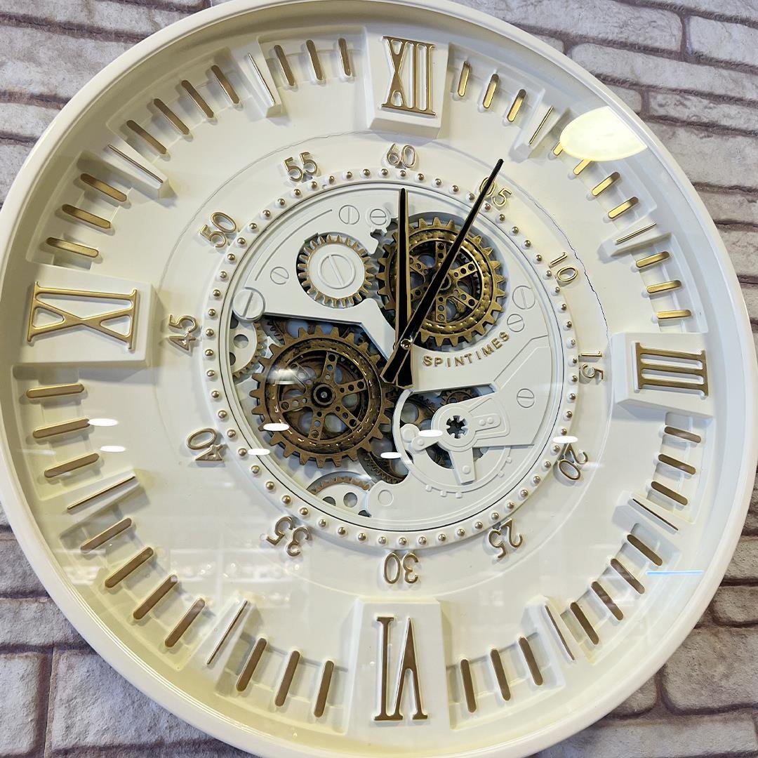Berlin Moving Gears Decorative Wall Clock Oversize Extra Large 23 Inch/60 cm Ekru