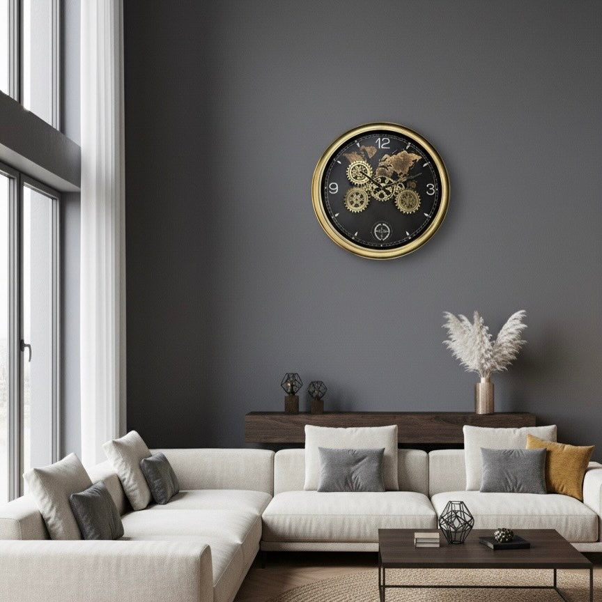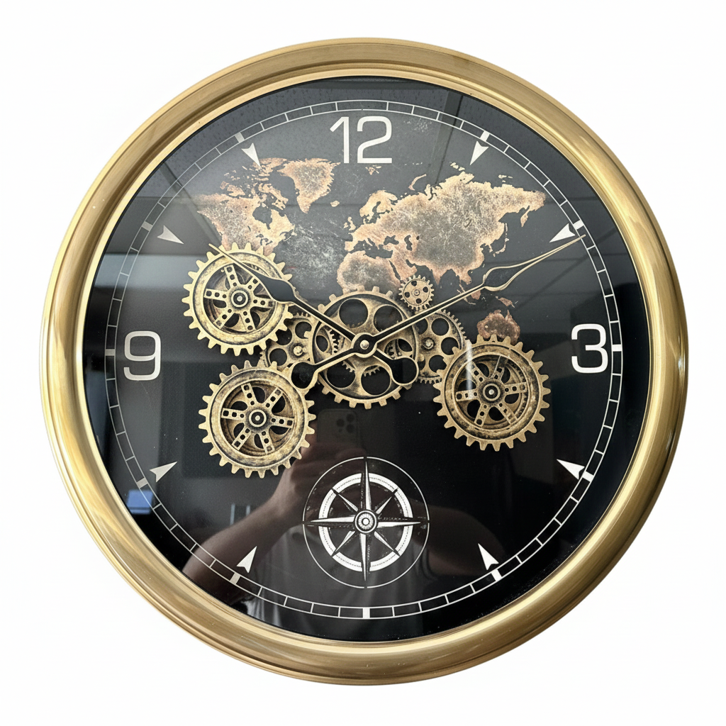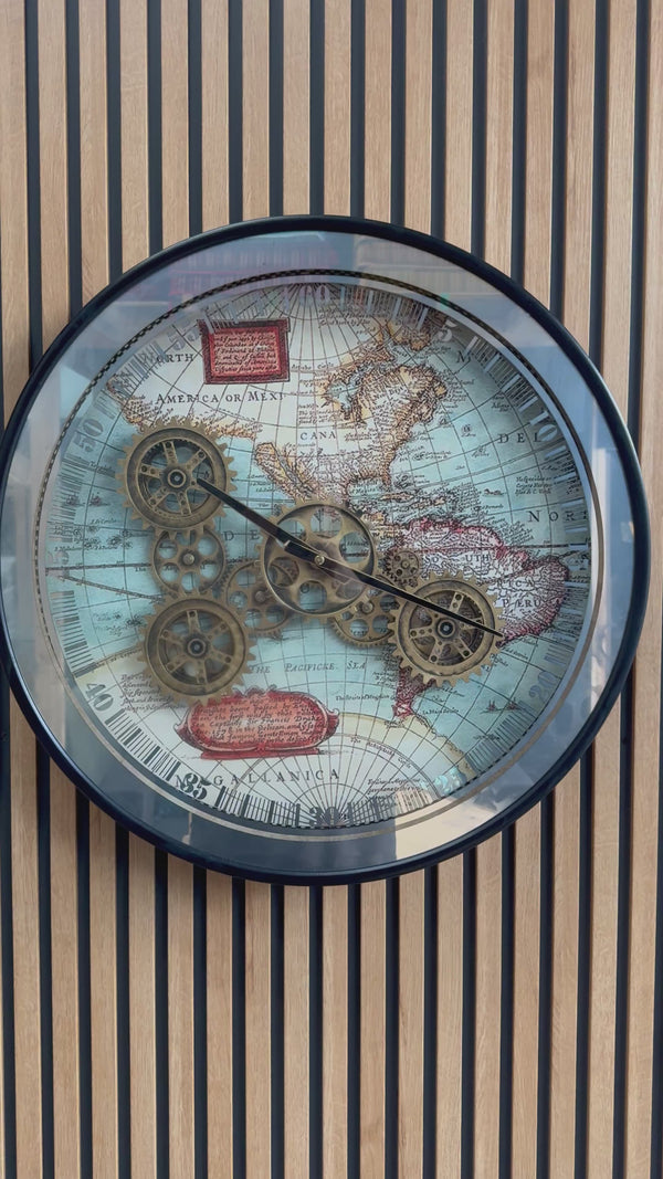 Exotic Map Moving Gears Decorative Wall Clock Oversize Extra Large 23 Inch/60 cm