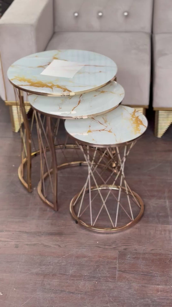 Venice Round Nest Of Tables Set - 3 Pieces Nesting Table Tempered Glass Top